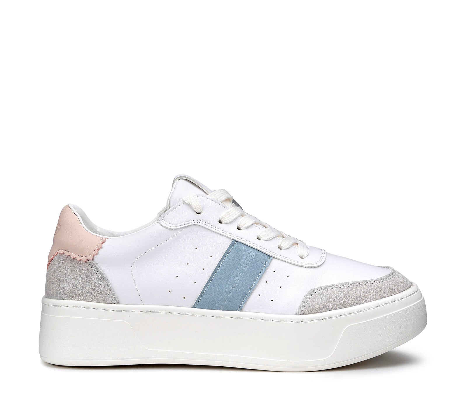 Cittadina, estiva, vivace e leggera questa sneakers da donna firmata Docksteps. Caratterizzata da una suola flatform che garantisce leggerezza e massimo comfort. Sviluppata nel modello allacciato in pelle vegana è perfetta per le giornate estive.