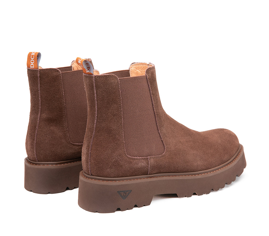 Questo stivaletto Chelsea firmato Docksteps, realizzato in morbida pelle scamosciata nella sofisticata tonalità del marrone, unisce eleganza discreta e stile contemporaneo. Il design essenziale è valorizzato dalla suola a carrarmato, che dona un tocco casual e ne aumenta la versatilità. Perfetto per completare con gusto sia look formali che outfit più rilassati, è un alleato ideale per chi cerca raffinatezza senza rinunciare al comfort quotidiano.