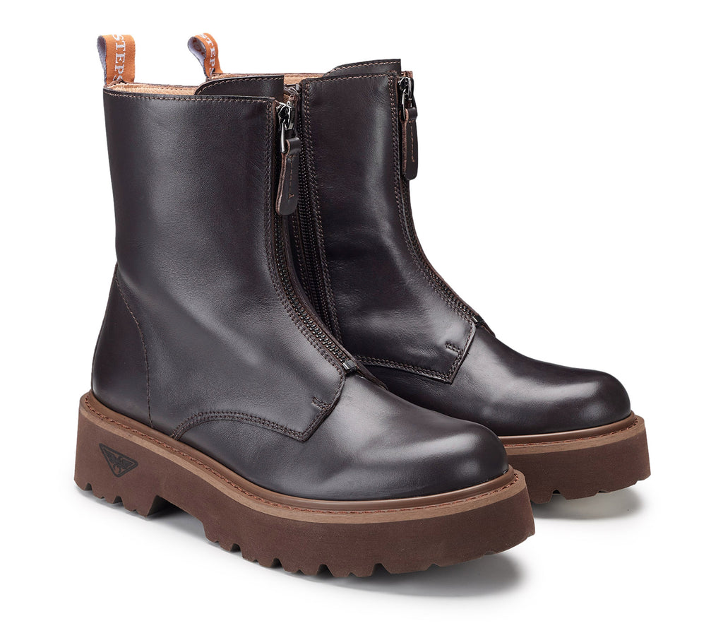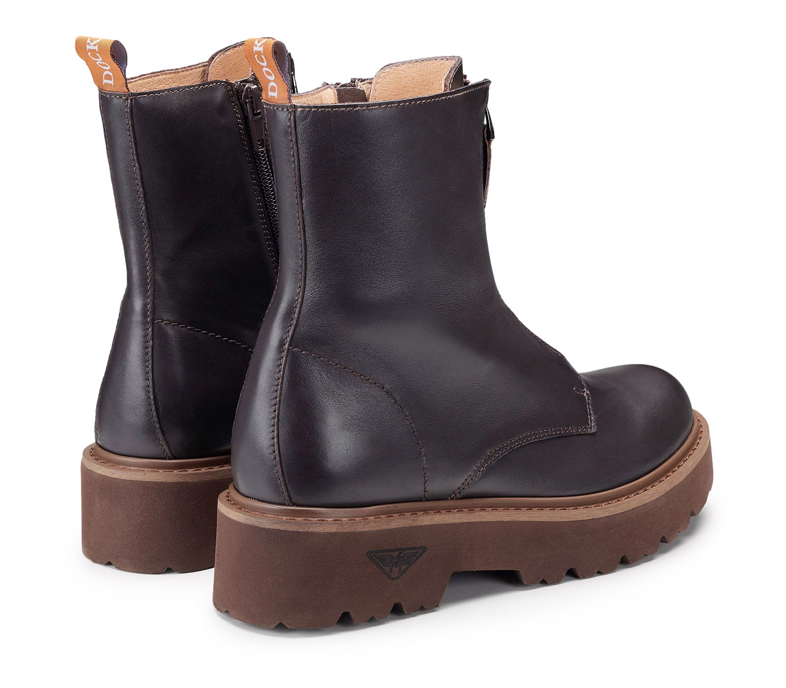 Grazie agli stivaletti attraversati da una zip decorativa di Docksteps proverai la sensazione di indossare uno stile versatile e casual, infatti grazie a questo modello realizzato in pelle marrone ti verrà voglia di vivere il bello delle passeggiate, sia in città che in campagna. Poggia su una suola extra light a contrasto personalizzata con il monogramma del brand, presenta una zip interna per facilitare la calzata.